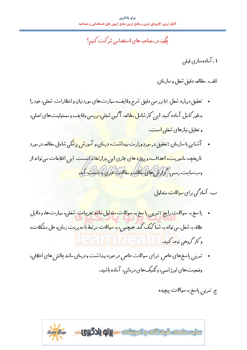جهت مصاحبه آزمون استخدامی وزارت بهداشت درمان و آموزش پزشکی