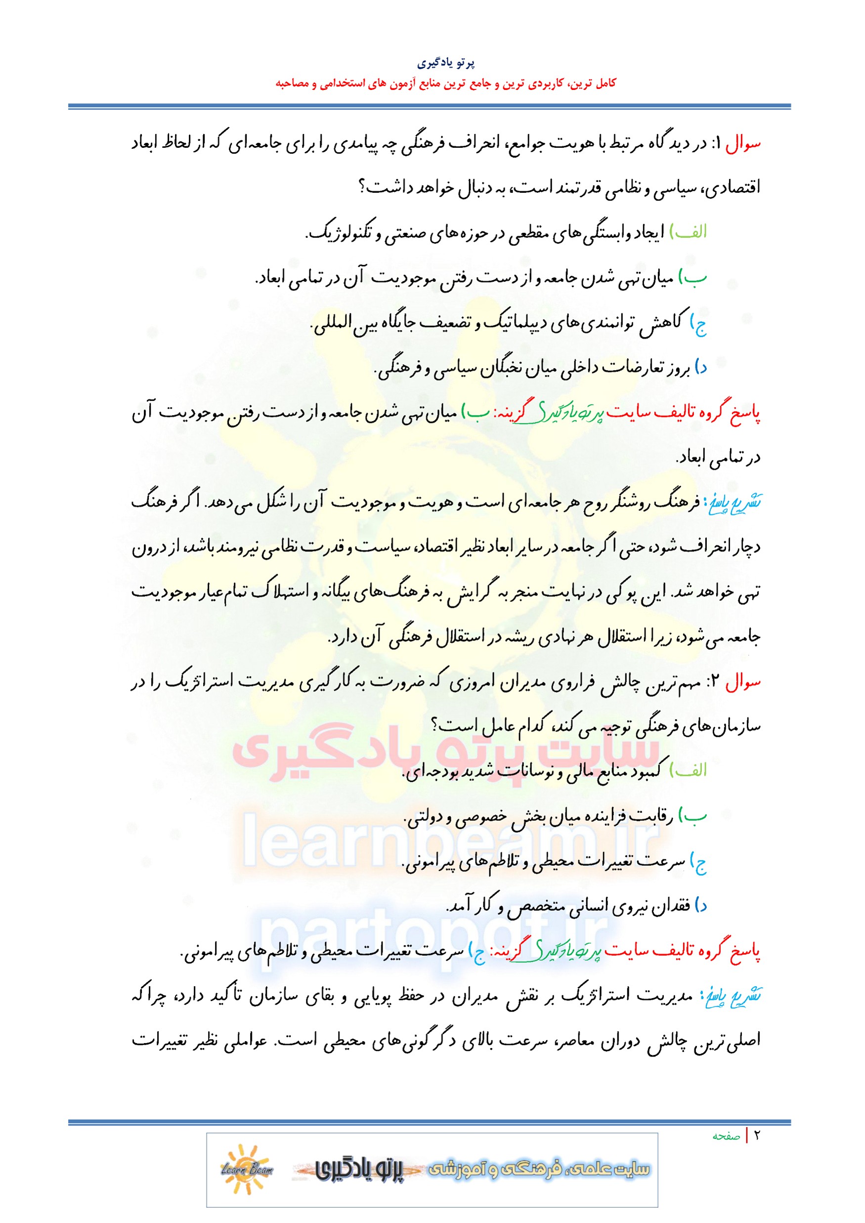 مجموعه سوالات و تست مدیریت سازمان های فرهنگیبا پاسخ تشریحی