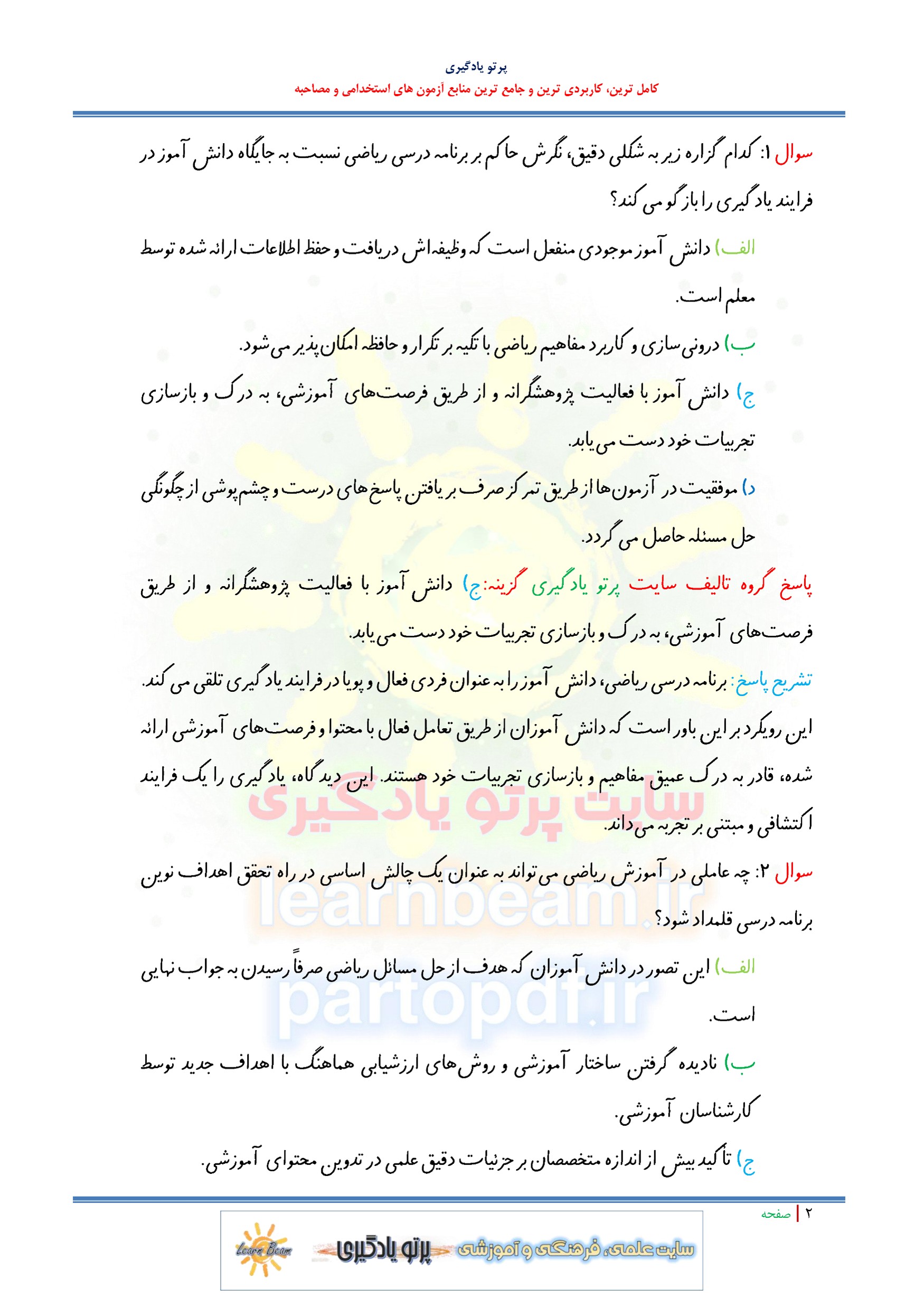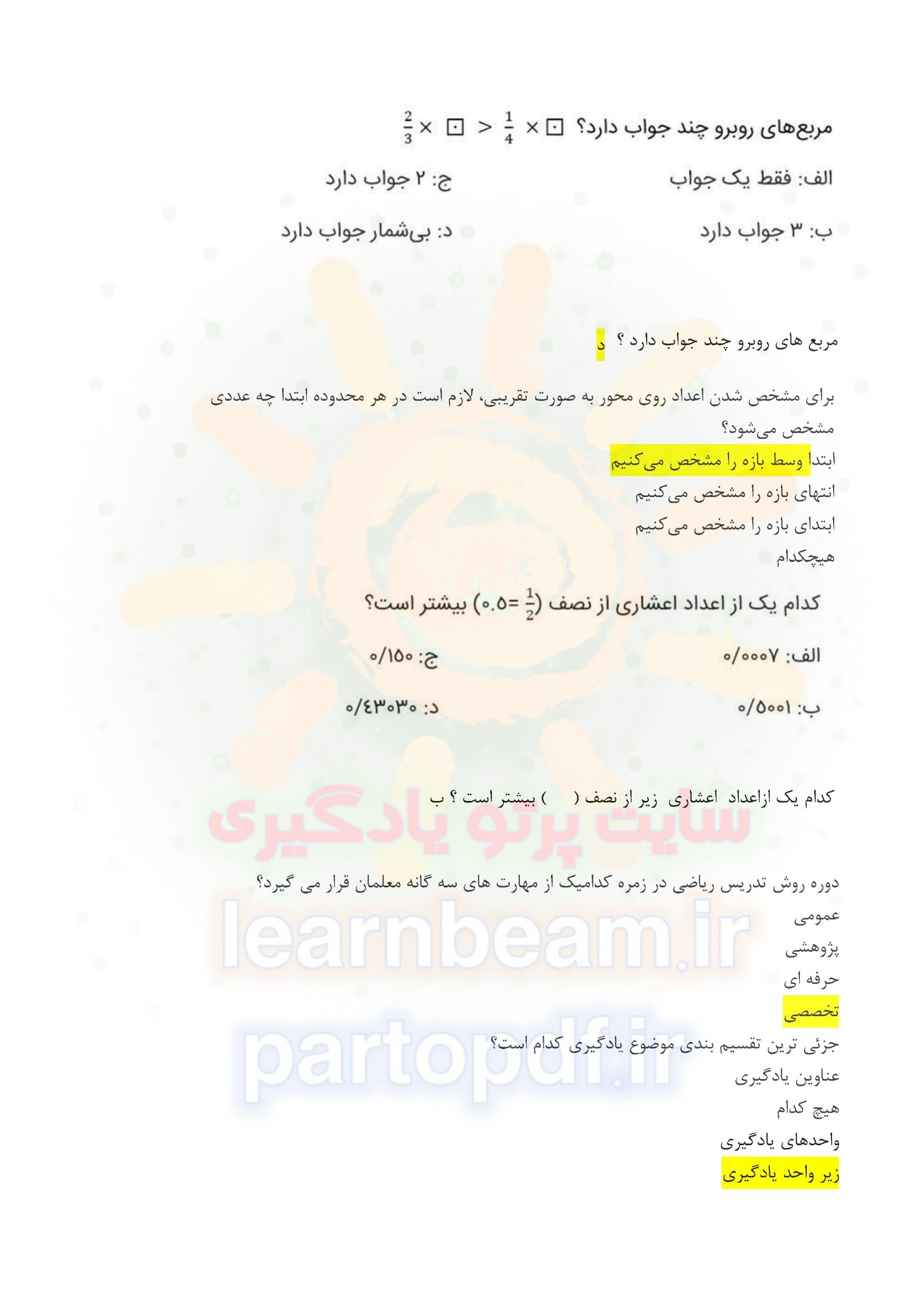 سوالات تستی روش تدریس ریاضی دوره ابتدایی