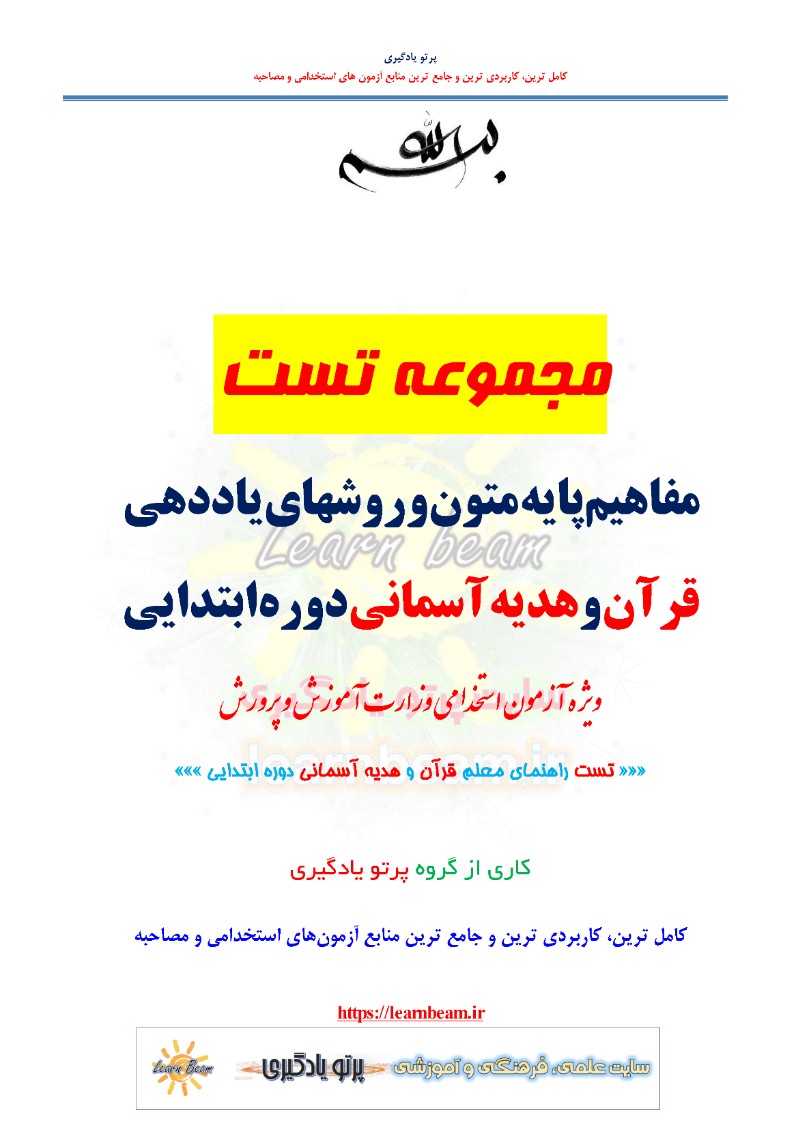 تست راهنما معلم قرآن (نهج القرآن) و هدیه آسمانی دوره ابتدایی