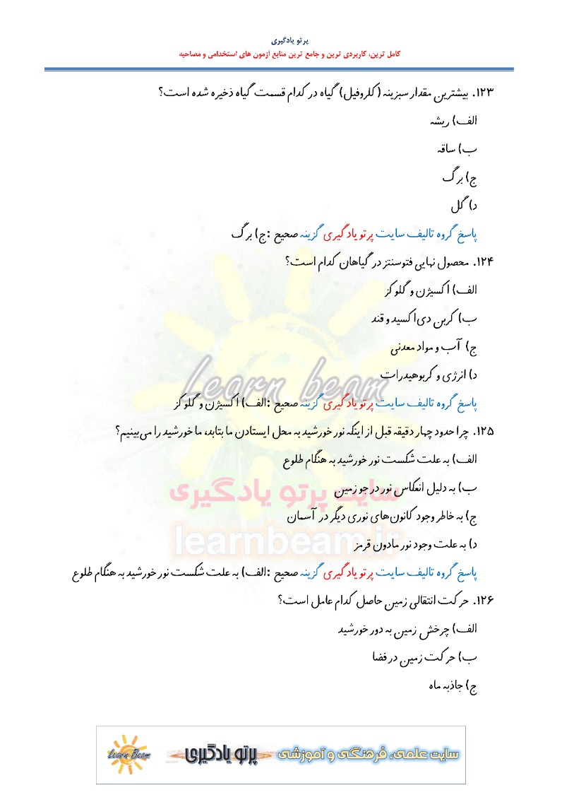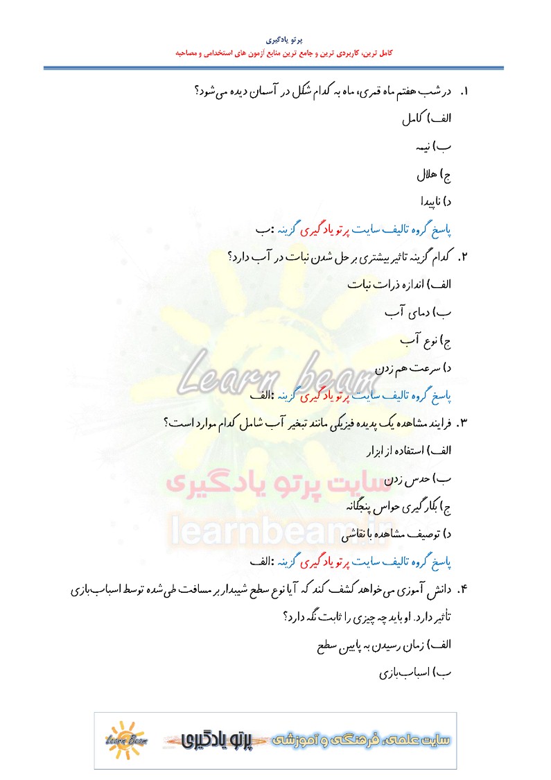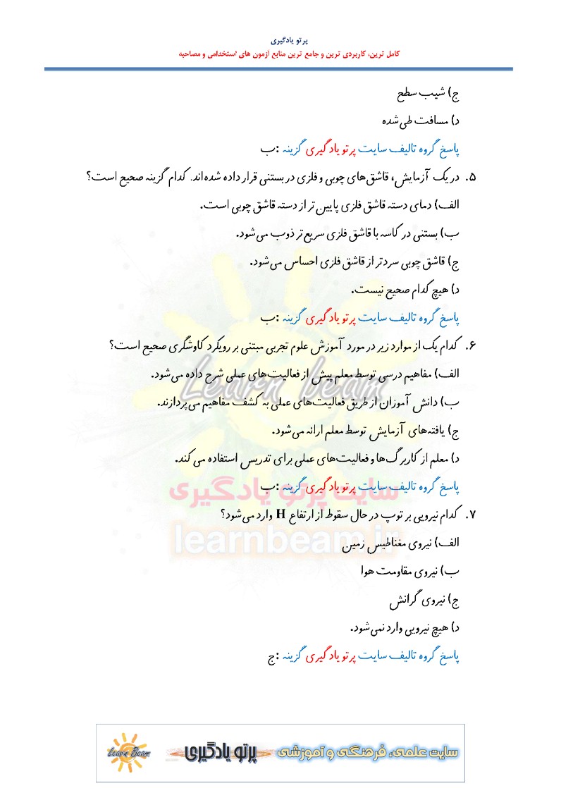 سوالات تستی روش تدریس علوم تجربی دوره ابتدایی