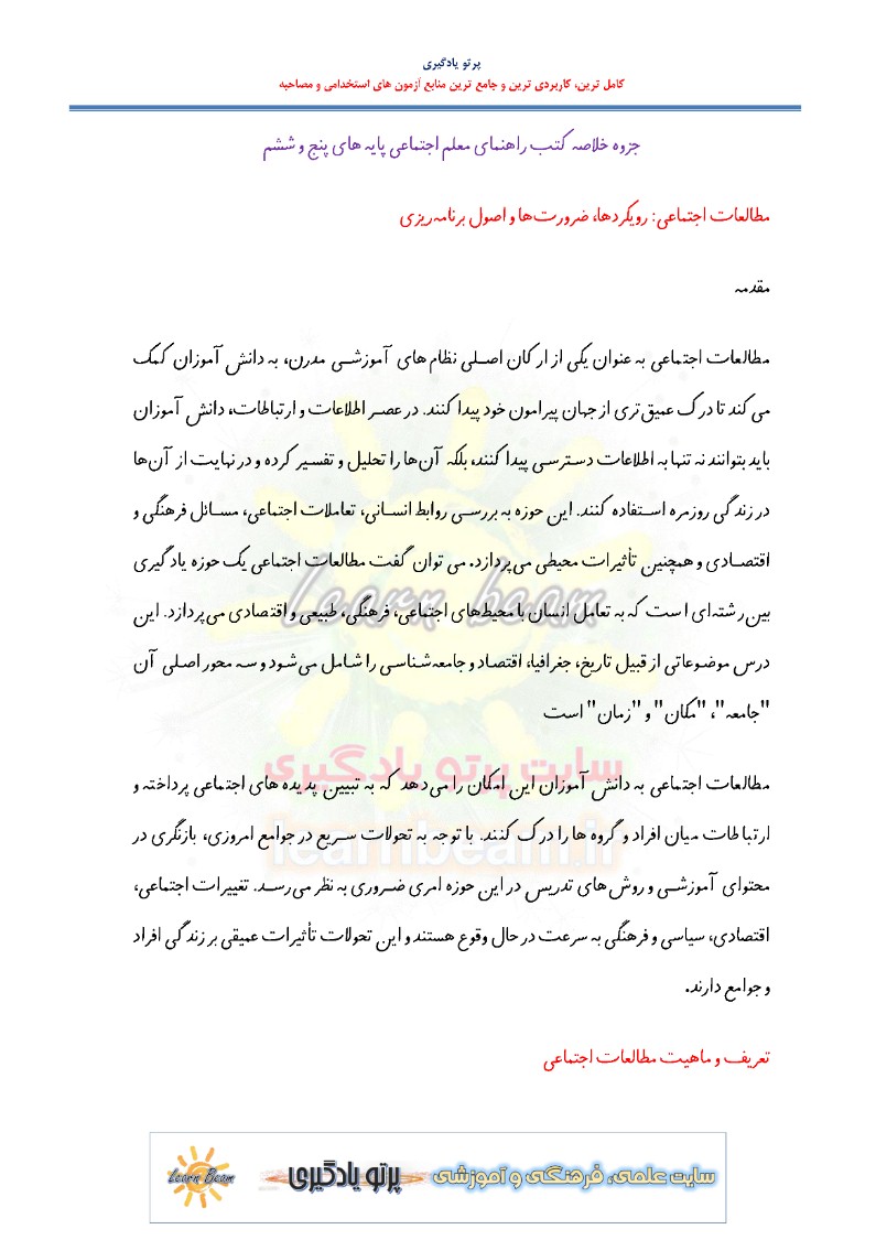 جزوه خلاصه راهنمای معلم مطالعات اجتماعی پایه پنجم و ششم ابتدایی