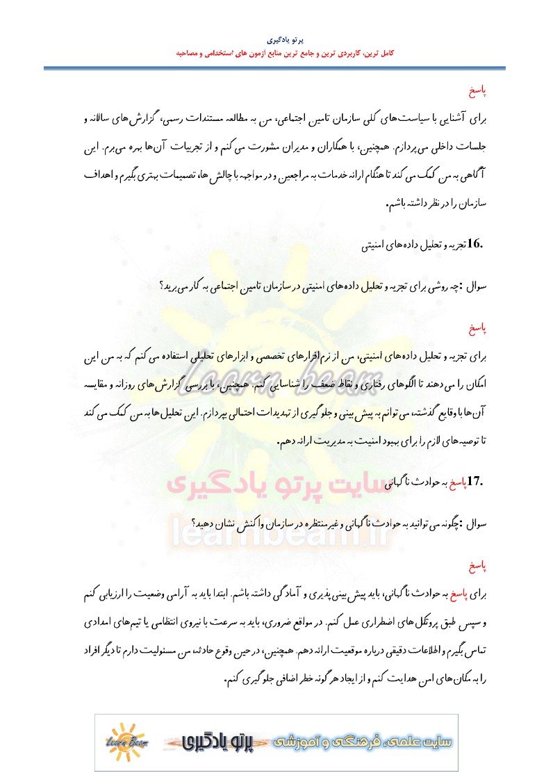 جزوه مصاحبه جذب نیروی حفاظت فیزیکی نگهبانی شرکت کار و تامین استخدامی تامین اجتماعی سال 1403