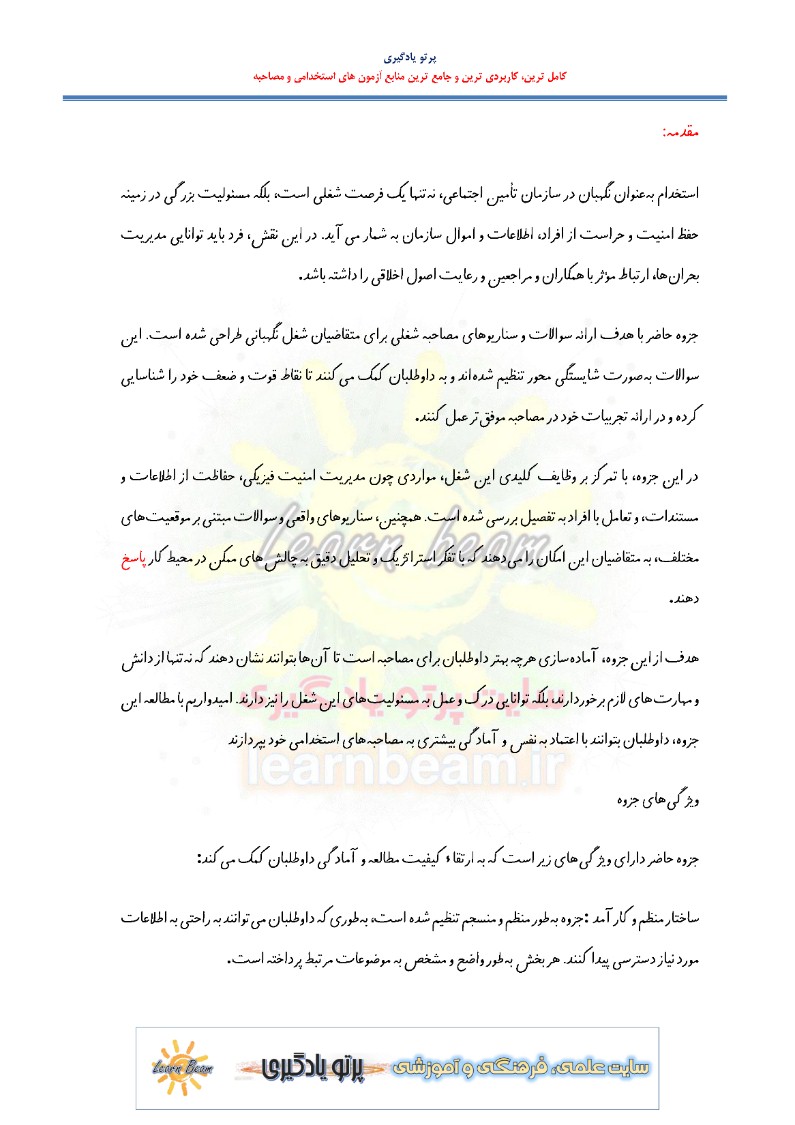جزوه مصاحبه جذب نگهبان شرکت کار و تامین