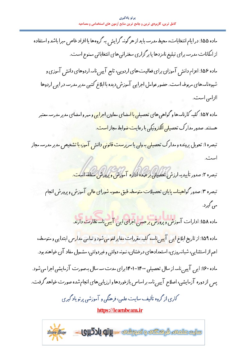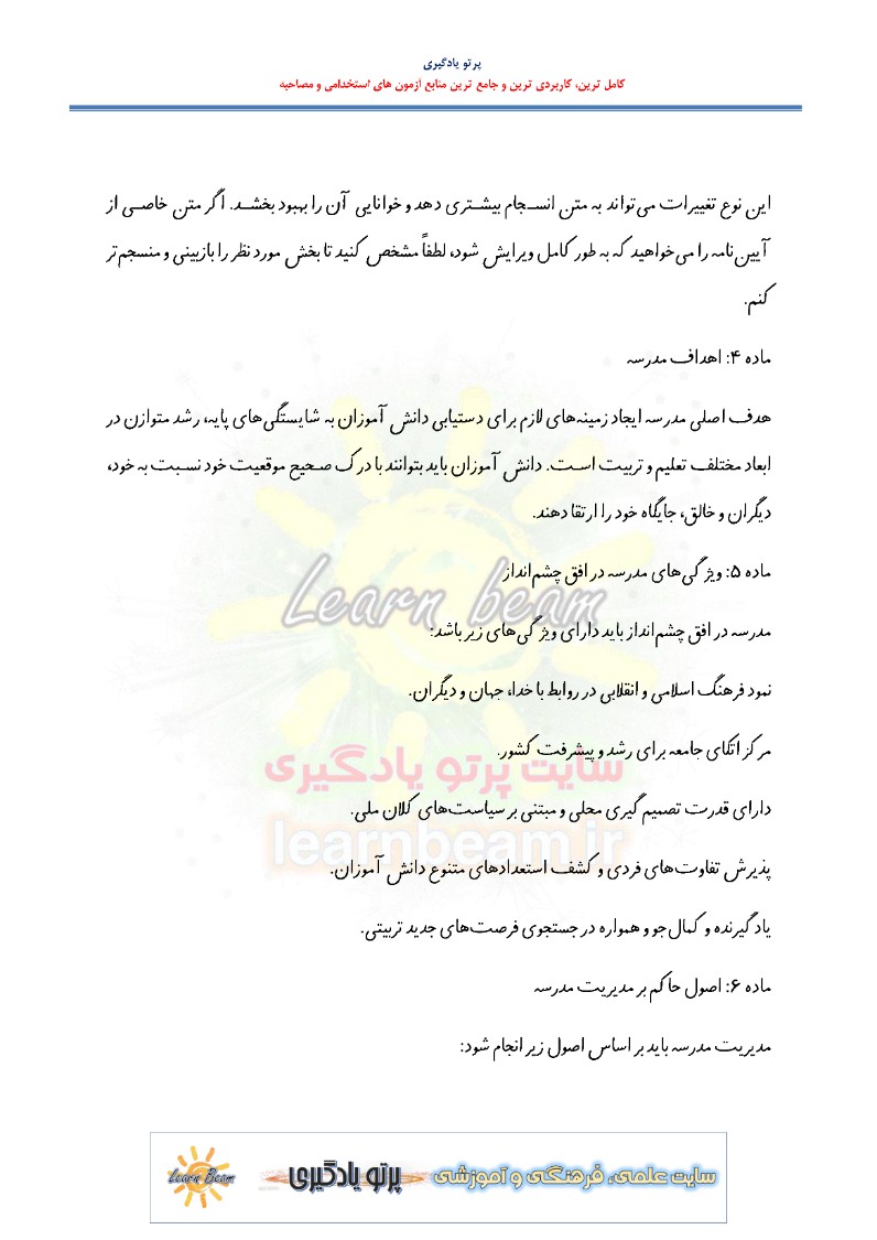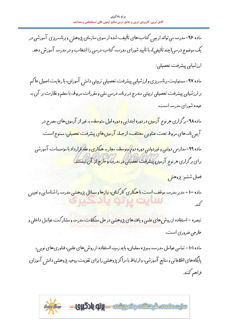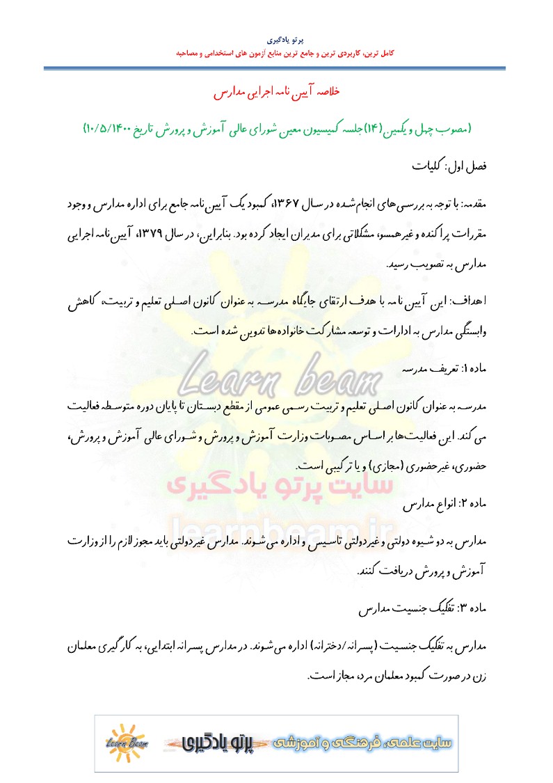 خلاصه آیین نامه اجرایی مدارس در 34 صفحه در قالب فایل pdf