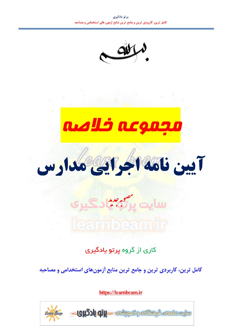 مجموعه خلاصه آیین نامه اجرایی مدارس در 34 صفحه در قالب فایل pdf