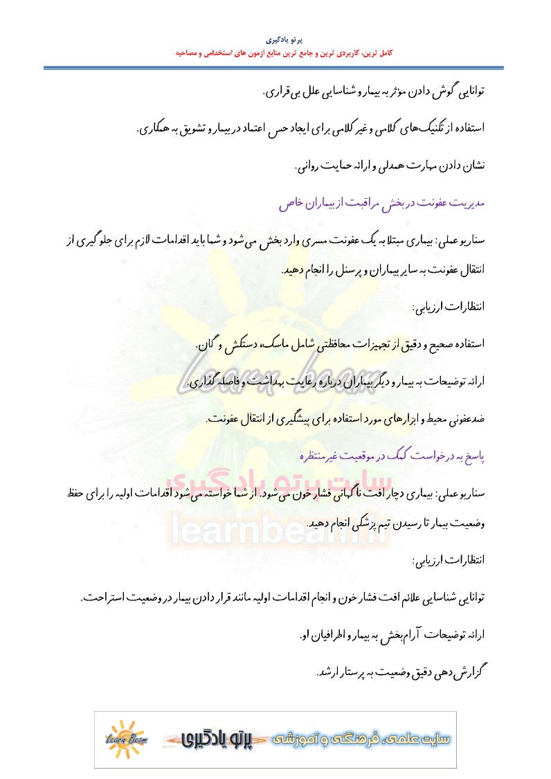 جزوه مصاحبه استخدامی کمک پرستار مجموعه سوالات آمادگی برای مصاحبه استخدامی کمک پرستار شامل مجموعه سوالات کاملا کاربردی با پاسخ پیشنهادی توضیحی ارزشمند در 41 صفحه در قالب فایل pdf. موسسه آوا سلامت با هدف تامین نیروی انسانی در مراكز پزشكی از میان متقاضیان مرد و زن استخدام می کند. این موسسه در نظر دارد بخشی از نیروی انسانی مورد نیاز مراکز پزشکی و بیمارستان ها را بر اساس ضوابط، مقررات و آیین نامه داخلی از بین متقاضیان مرد و زن واجد شرایط، پس از کسب موفقیت در آزمون کتبی، با انجام مصاحبه های تخصصی و طی مراحل اداری تامین کند. این مجموعه برای آمادگی عزیزان پذیرفته شده در مرحله اول آزمون استخدامی موسسه آوا سلامت تهیه گردیده است. مجموعه سوالات آمادگی برای مصاحبه استخدامی کمک پرستار برای حضور توانمند عزیزان در کانون مصاحبه تالیف گردیده است. تلاش گروه پرتو یادگیری با تهیه پک کامل این مصاحبه، راحتی و دستیابی عادلانه همه داوطلبین این آزمون استخدامی به منابع کامل می باشد. ضمن آرزوی موفقیت برای یکایک عزیزان در مصاحبه تخصصی پیش رو.