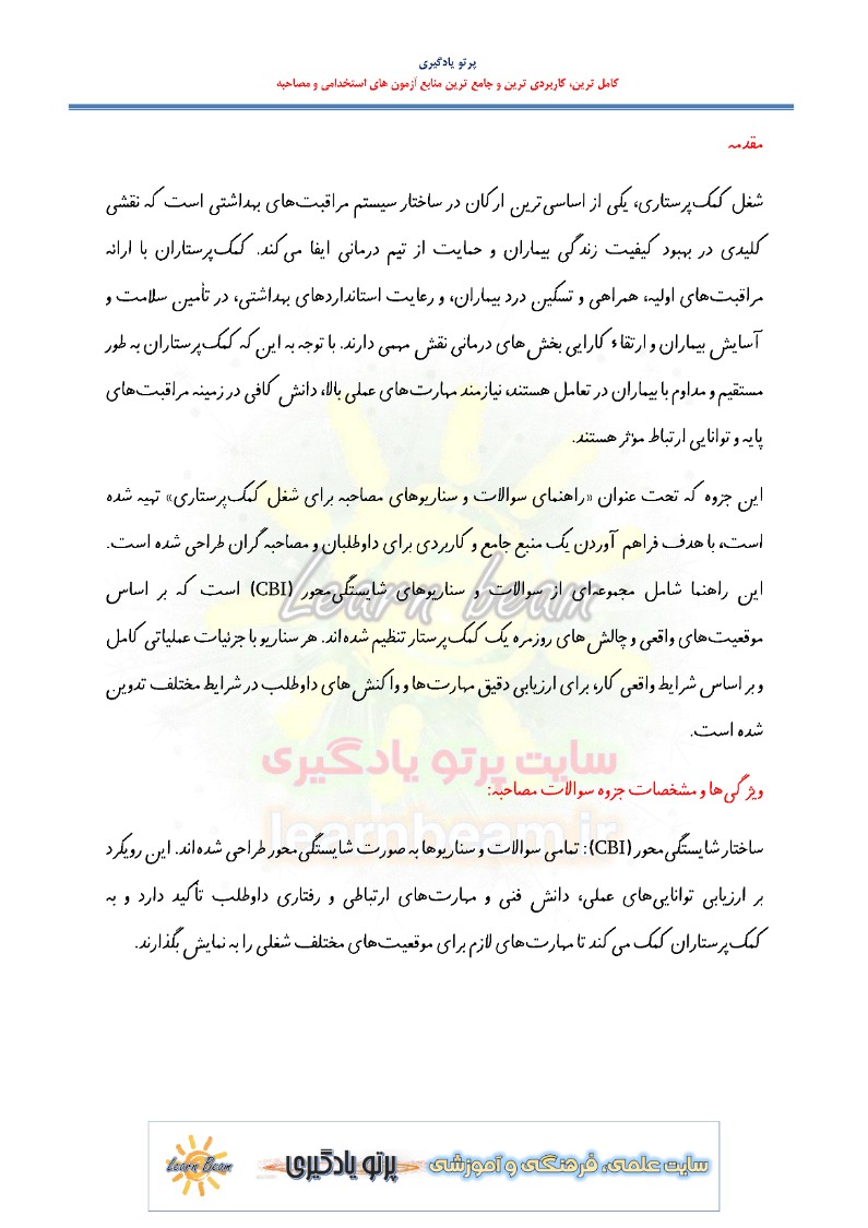 مجموعه سوالات آمادگی برای مصاحبه استخدامی کمک پرستاری