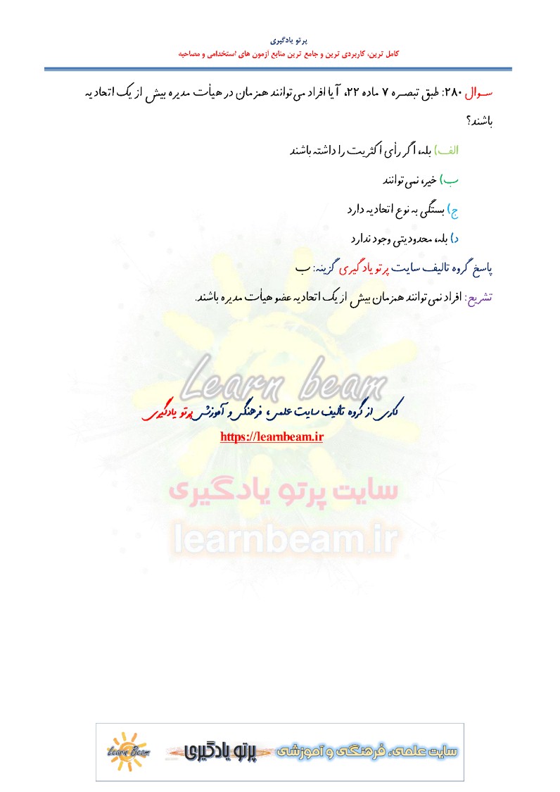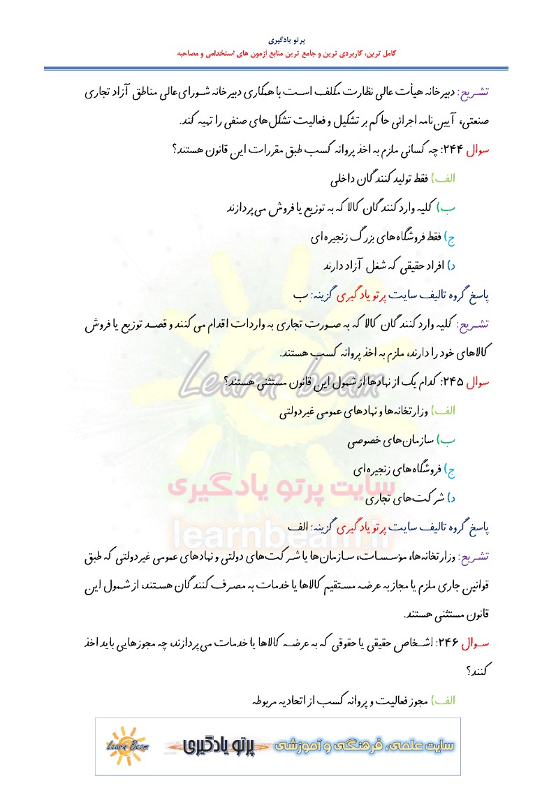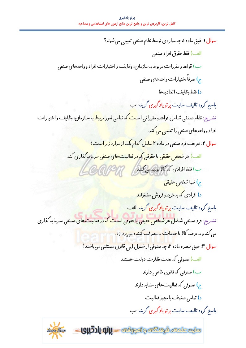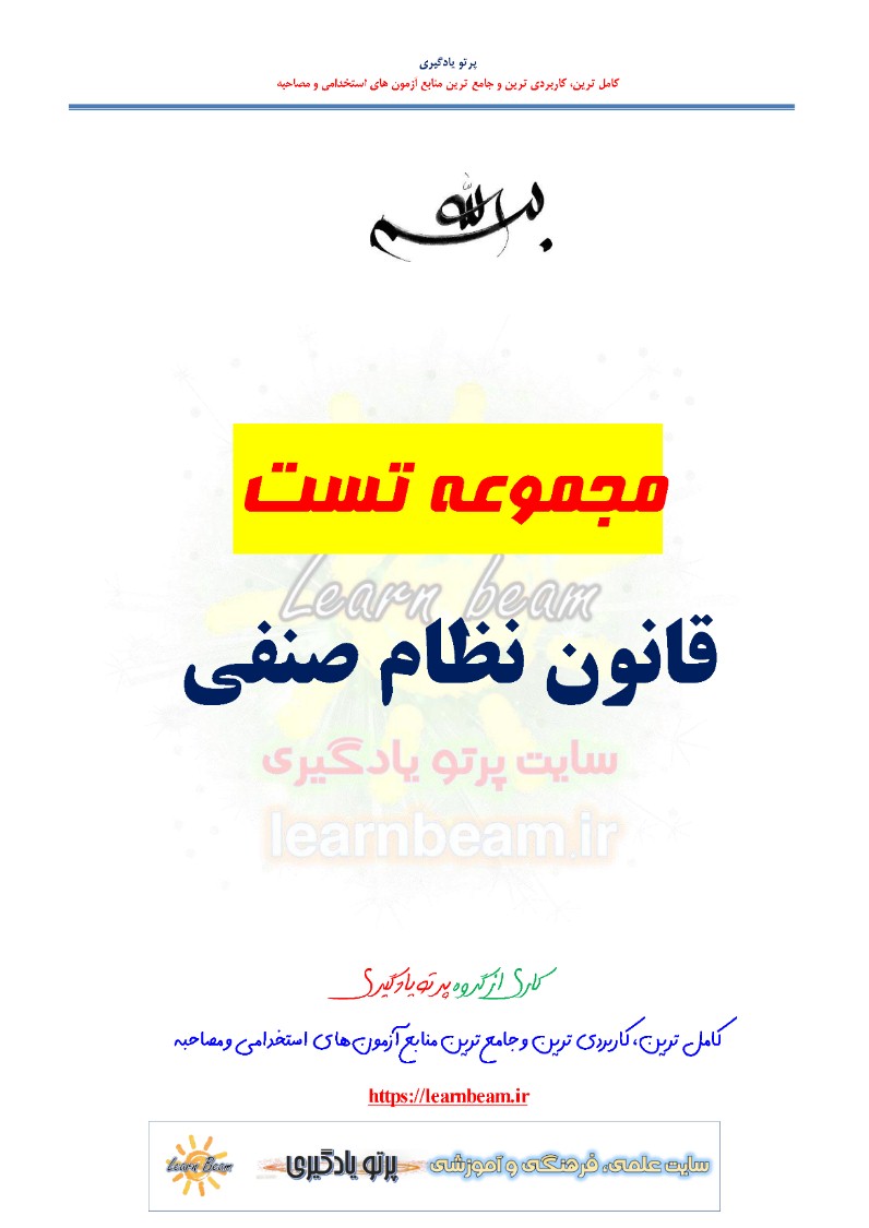 سوالات تستی قانون نظام صنفی شامل 280 تست در 106 صفحه در قالب فایل pdf با پاسخ تشریحی قابل چاپ با کیفیت عالی جهت انسجام ذهنی، خودآزمایی و مطالعه سریع داوطلبین شرکت کننده در آزمون های استخدامی و دوازدهمین امتحان مشترک فراگیر دستگاه های اجرایی کشور مطابق با دفترچه ثبت نام و مطابق با سرفصل های اعلام شده در دفترچه راهنمای ثبت نام می باشد.
