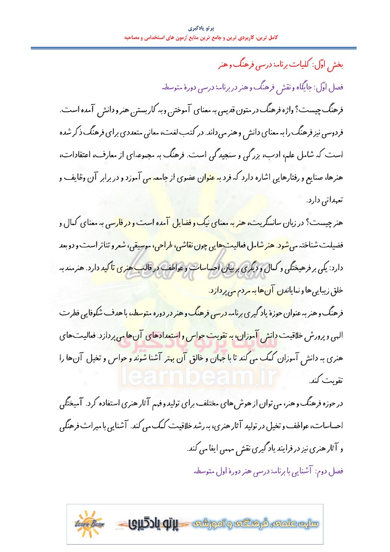 جزوه خلاصه راهنمای معلم فرهنگ و هنر پایه هفتم متوسطه