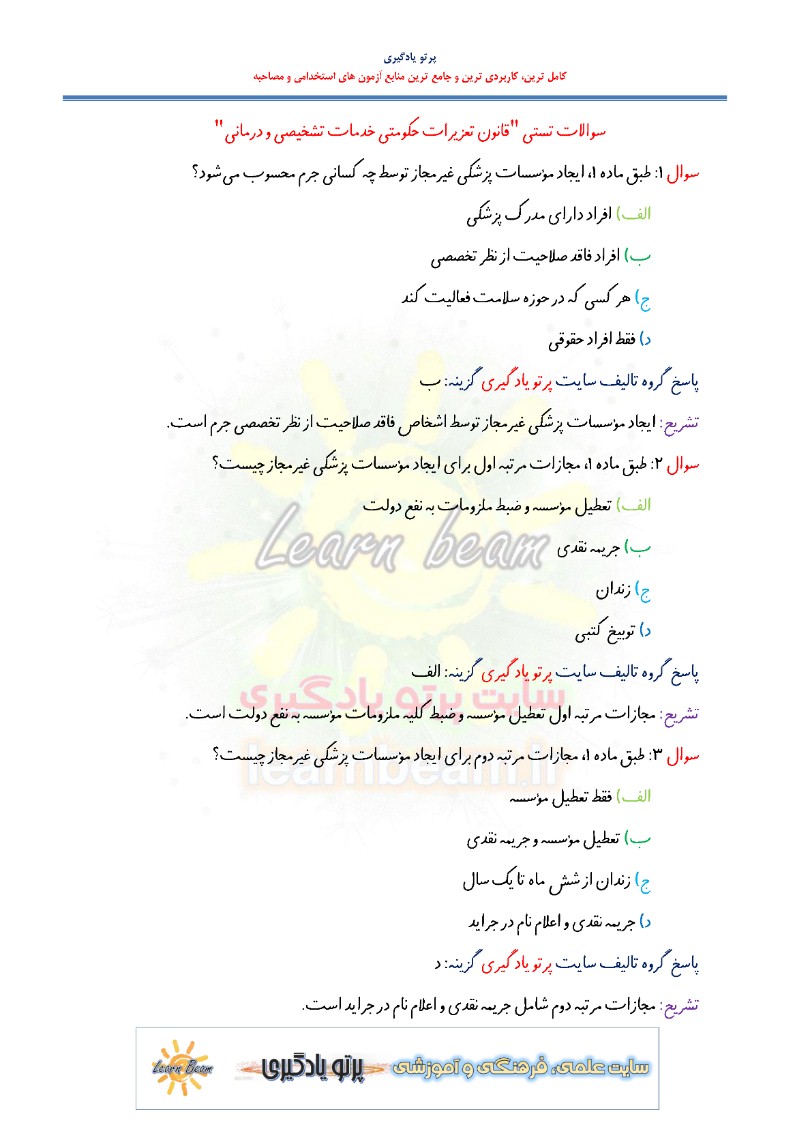 تست قانون تعزیرات حکومتی امور بهداشتی و درمانی