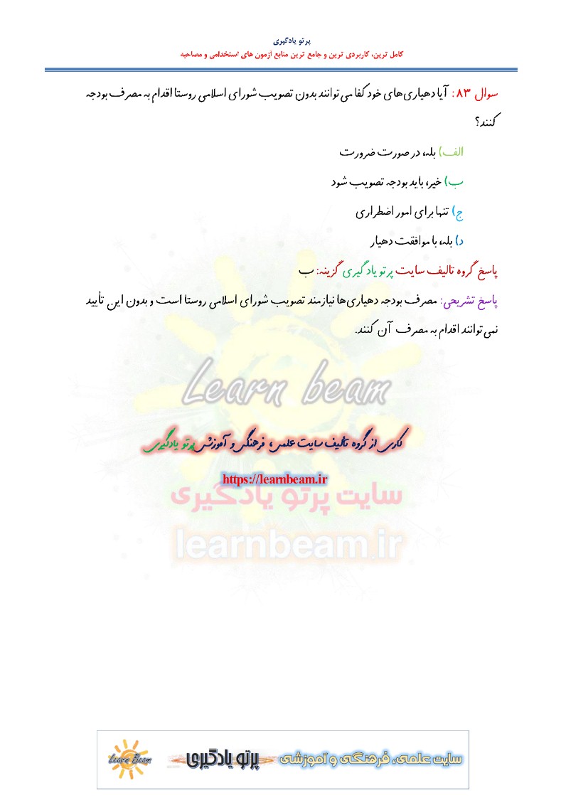 تست قانون نوسازی و عمران شهری + قانون تأسیس دهیاریهای خودکفا