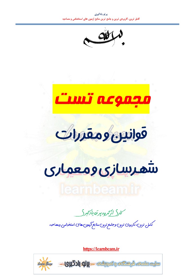 سوالات تستی قوانین و مقررات شهرسازی و معماری شامل 278 سوال تستی در 100 صفحه در قالب فایل pdf قابل چاپ با کیفیت عالی جهت انسجام ذهنی، خودآزمایی و مطالعه سریع داوطلبین شرکت کننده در آزمون های استخدامی و دوازدهمین امتحان مشترک فراگیر دستگاه های اجرایی کشور مطابق با دفترچه ثبت نام و مطابق با سرفصل های اعلام شده در دفترچه راهنمای ثبت نام می باشد.