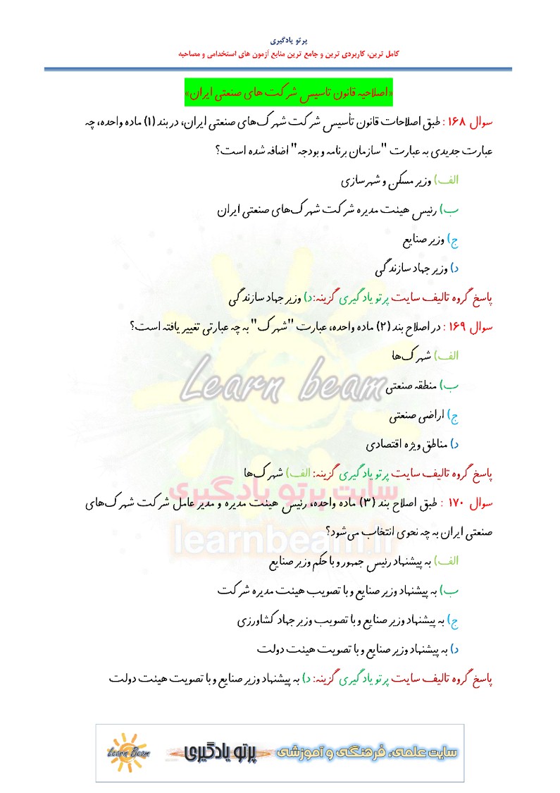 تست قانون اصلاح قانون راجع به تاسيس شركت شهركهاي صنعتي ايران