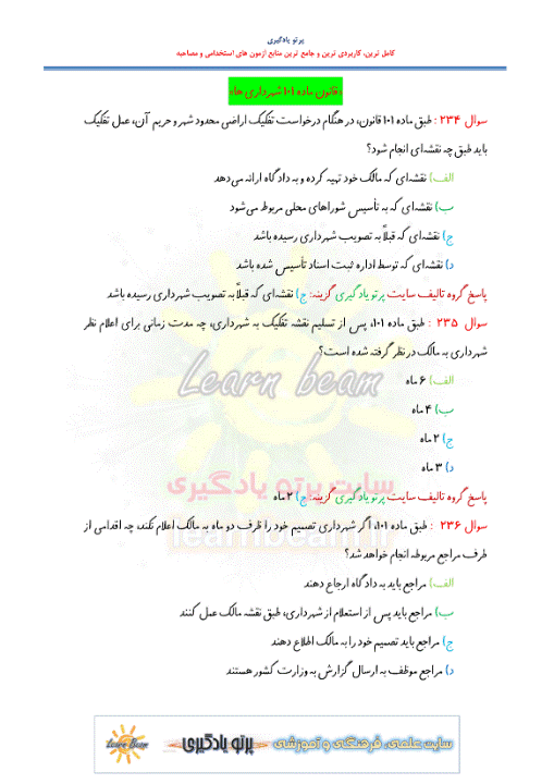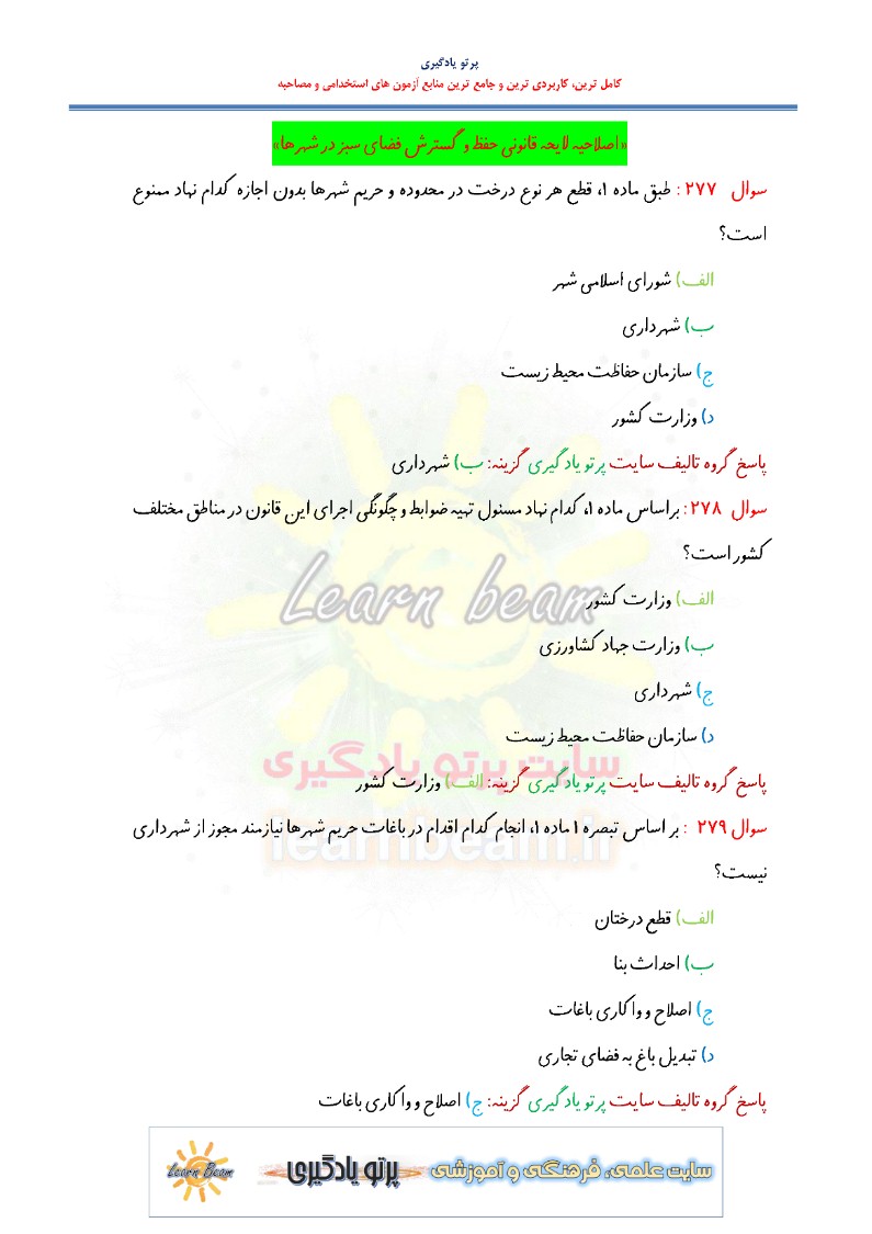 تست قانون تعاريف محدوده و حريم شهر، روستا و شهرك و نحوه تعيين آنها