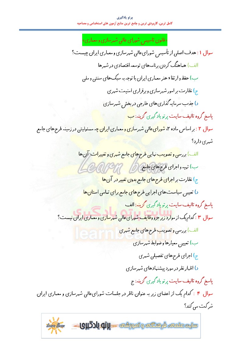 تست قانون تاسيس شورايعالي شهرسازي و معماري ايران (اسفند 1351)