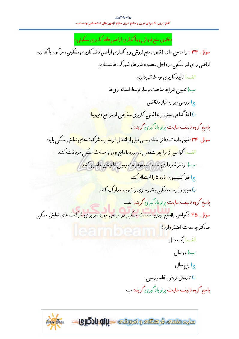 تست قانون منع فروش و واگذاري اراضي فاقد كاربري مسكوني براي امر مسكن به شركتهاي تعاوني مسكن و ساير اشخاص حقيقي و حقوقی (مرداد 1381)